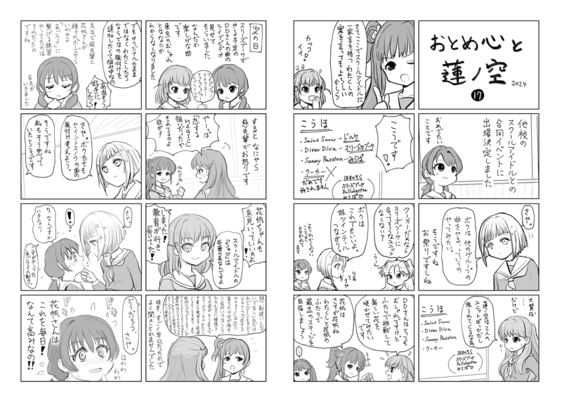 冬コミの本に書いた蓮ノ空まんが。 ユニット甲子園で恋するMagicやったら良いのになー という願いがこもっていたはずです。