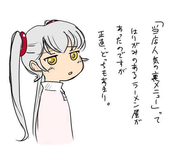 裏メニューはメニューに載せた時点で裏じゃないのではないかと、どうでも良いことを思った